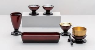 ディアモンサイズ 花立(直径6cmX高9.1cm)/ 灯立(直径5.2cmX高4.7cm)/ 仏器(直径5cmX高4.1cm)/ 茶器(直径5cmX高4.1cm)/ 角香炉(幅19.1cmX奥行6cmX 高4cm)/ 仏器善(高1.2cmx幅15.1cmx奥5.5cm) |